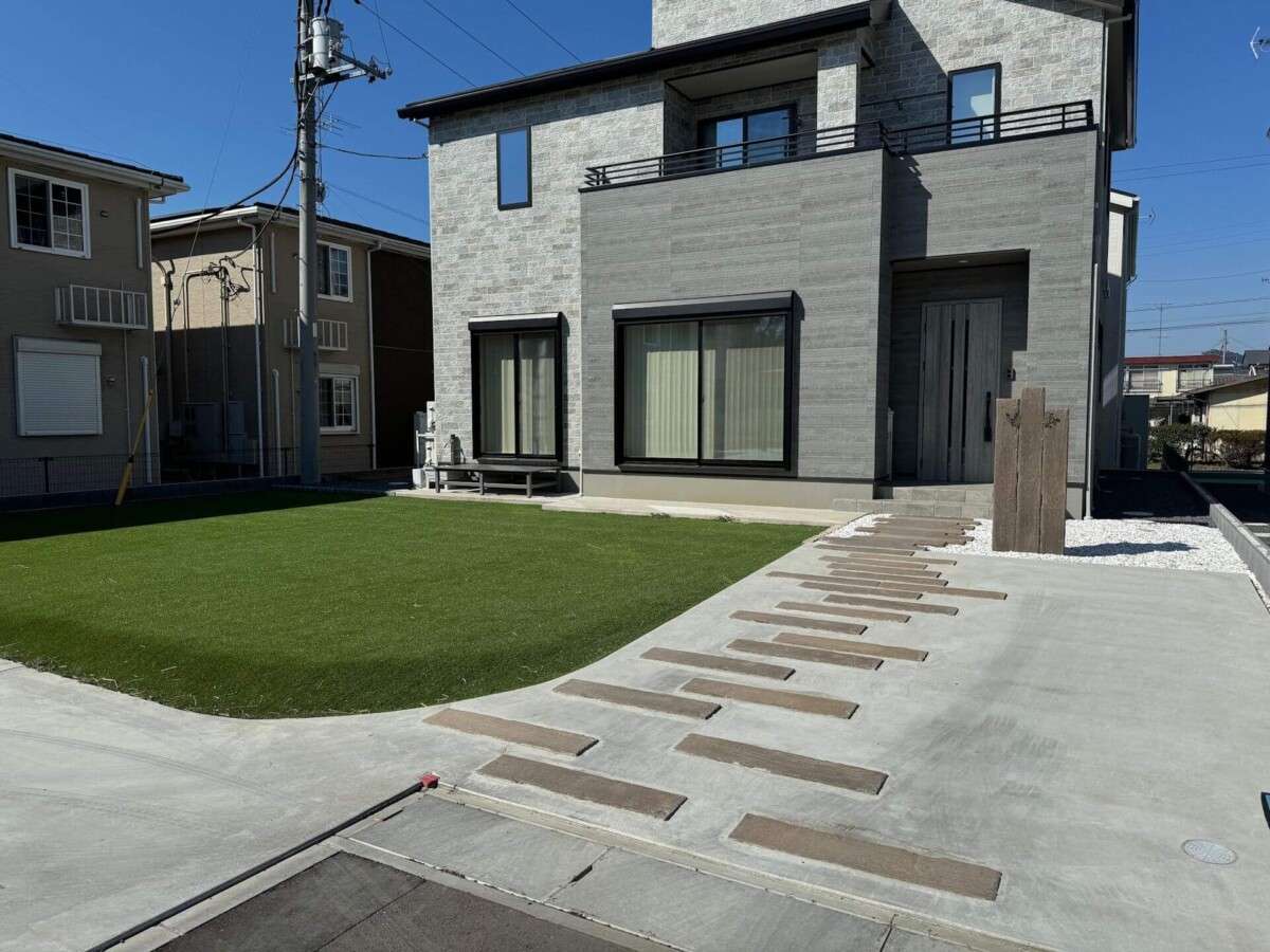 アプローチに貼った木目調の市松模様のタイルをに貼り、アクセントを付けた外構です。家の前には人工芝もあり一年中緑を感じられます。庭が広く、どうしてものっぺりしてしまうときは色の違いなどによりアクセントを付けると引き締まりま […]