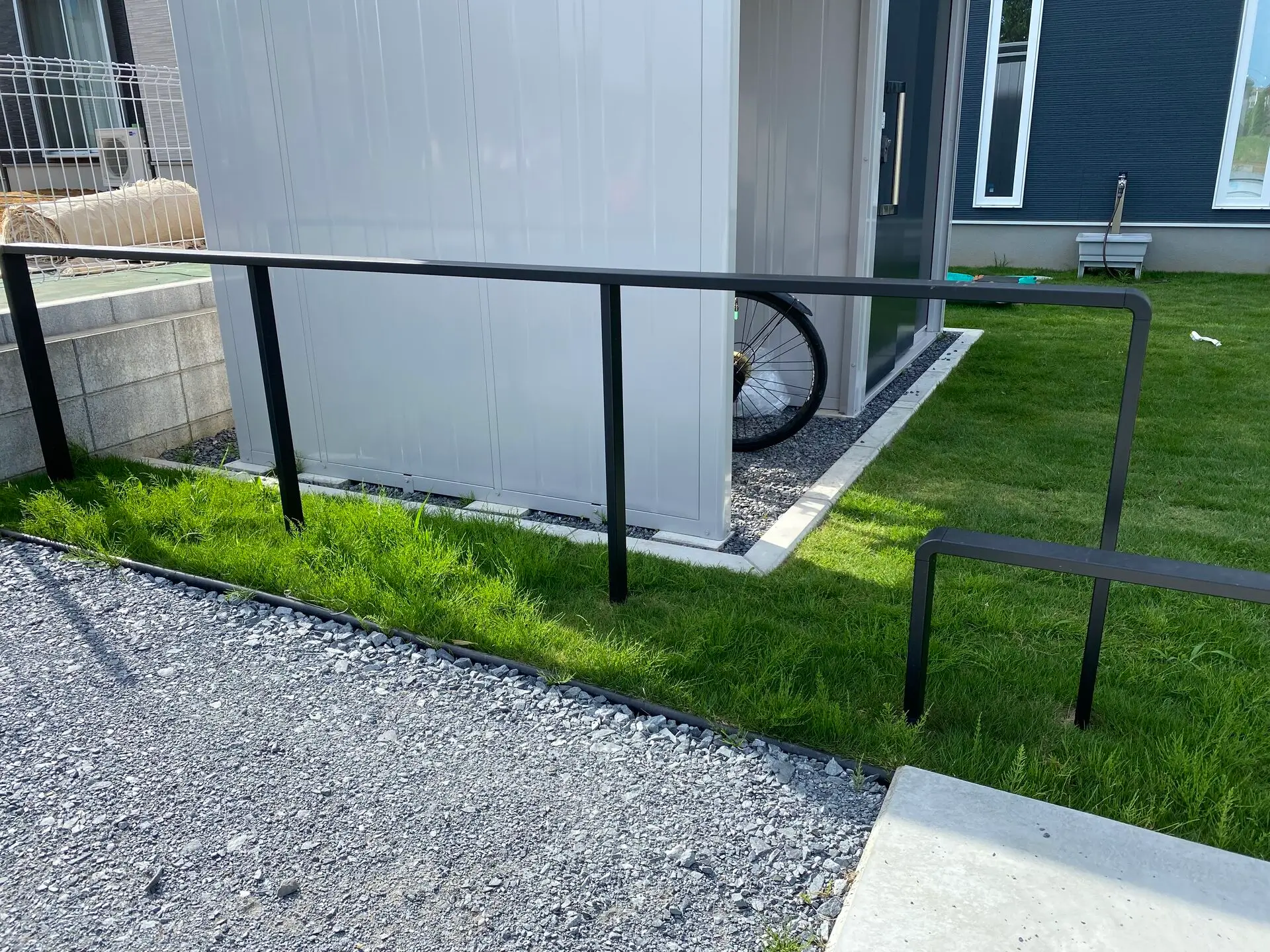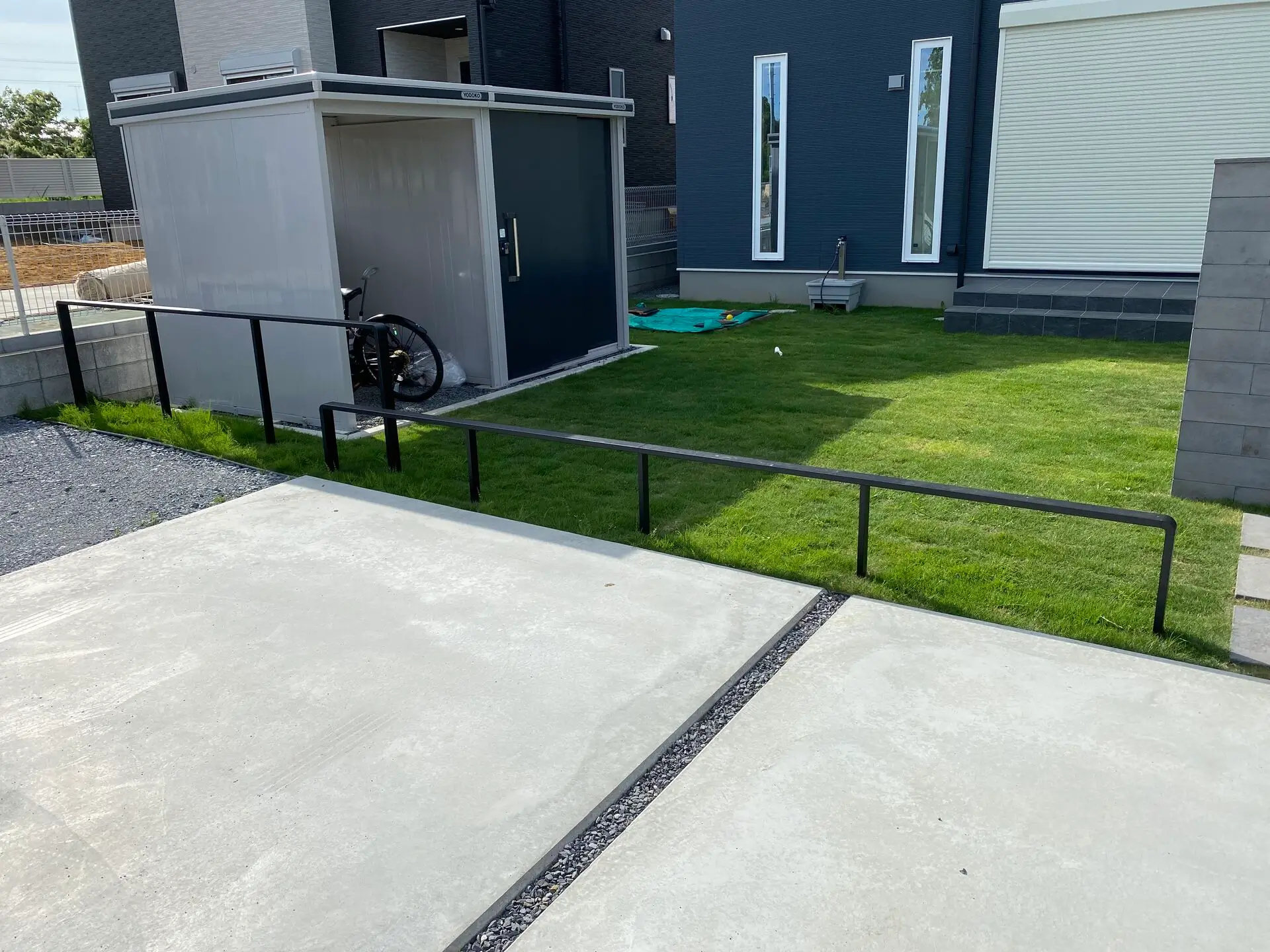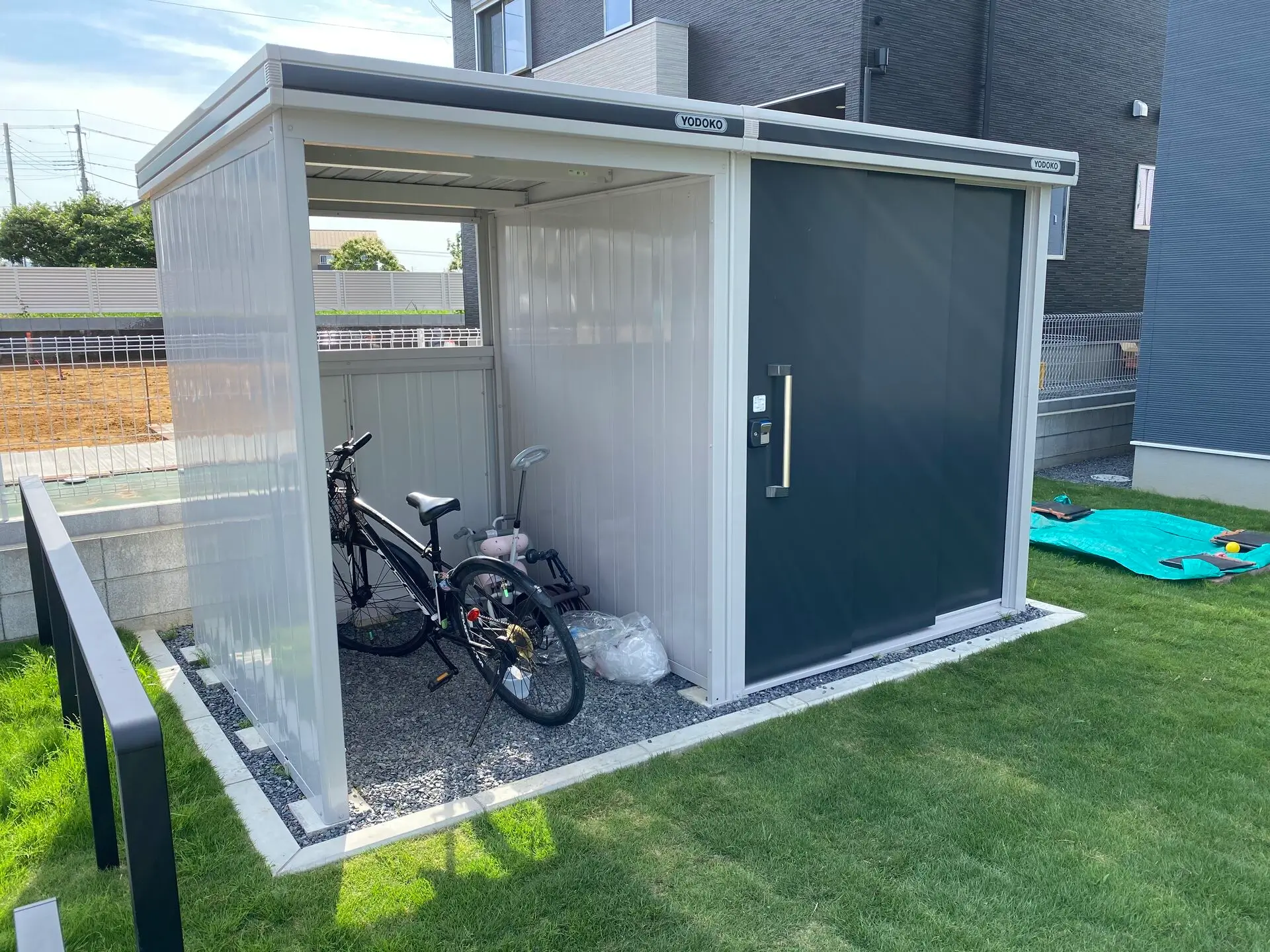 駐輪場兼物置も設置し、使い勝手とオシャレさ、両方を兼ね備えたシンプルイズベストな施工となっております。